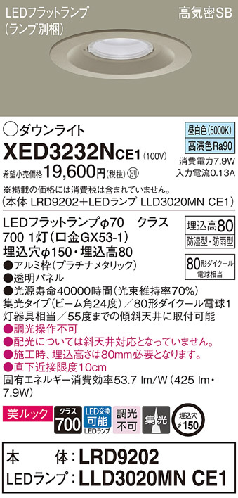 Panasonic ¥¨¥¯¥¹¥Æ¥ê¥¢¥À¥¦¥ó¥é¥¤¥È XED3232NCE1