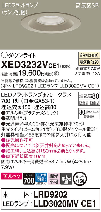 Panasonic ¥¨¥¯¥¹¥Æ¥ê¥¢¥À¥¦¥ó¥é¥¤¥È XED3232VCE1