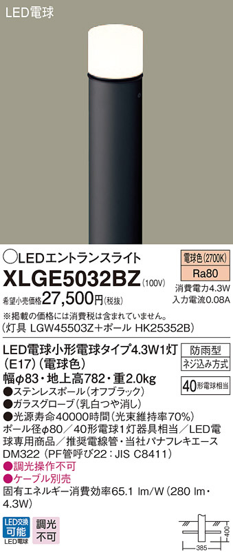 Panasonic ¥¨¥¯¥¹¥Æ¥ê¥¢¥é¥¤¥È XLGE5032BZ