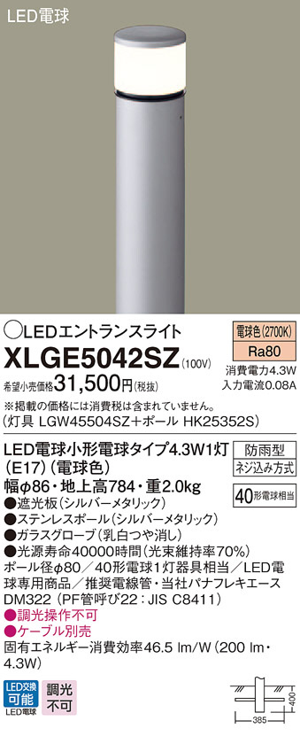 Panasonic ¥¨¥¯¥¹¥Æ¥ê¥¢¥é¥¤¥È XLGE5042SZ