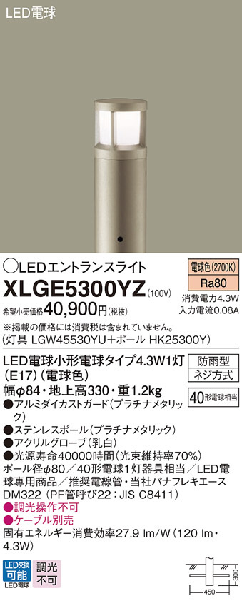 Panasonic ¥¨¥¯¥¹¥Æ¥ê¥¢¥é¥¤¥È XLGE5300YZ