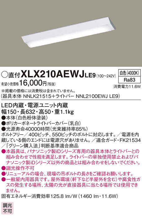 Panasonic ¥Ù¡¼¥¹¥é¥¤¥È XLX210AEWJLE9