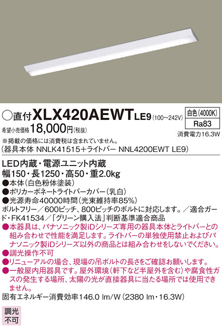 Panasonic ¥Ù¡¼¥¹¥é¥¤¥È XLX420AEWTLE9