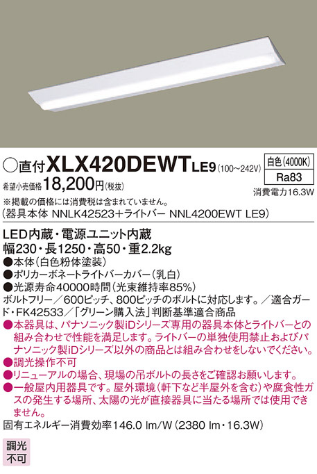 Panasonic ¥Ù¡¼¥¹¥é¥¤¥È XLX420DEWTLE9