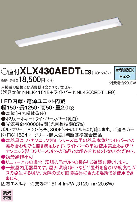Panasonic ¥Ù¡¼¥¹¥é¥¤¥È XLX430AEDTLE9