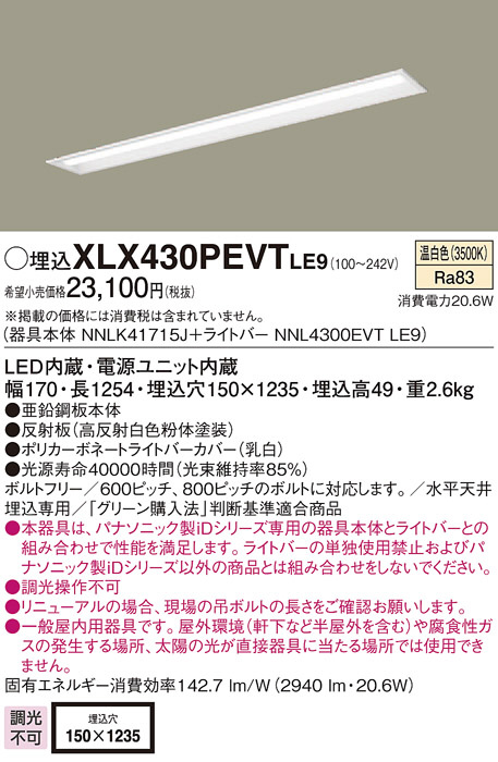 Panasonic ¥Ù¡¼¥¹¥é¥¤¥È XLX430PEVTLE9