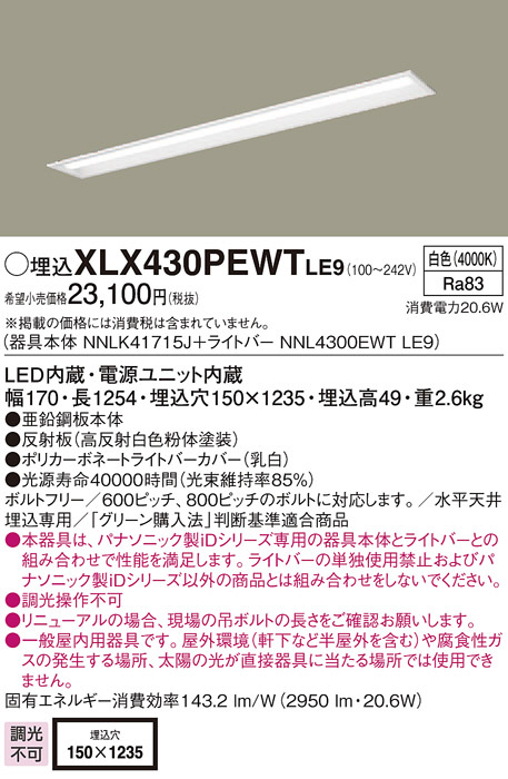 Panasonic ¥Ù¡¼¥¹¥é¥¤¥È XLX430PEWTLE9