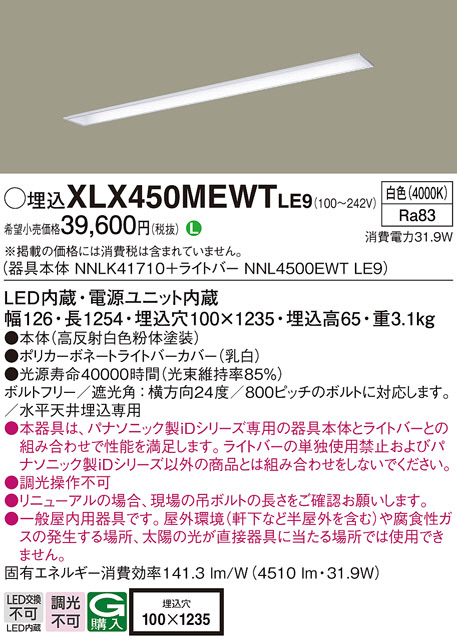 Panasonic ¥Ù¡¼¥¹¥é¥¤¥È XLX450MEWTLE9