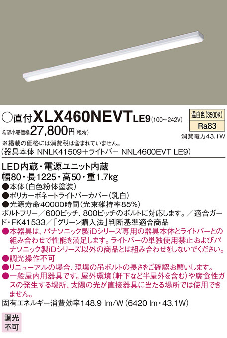 Panasonic ¥Ù¡¼¥¹¥é¥¤¥È XLX460NEVTLE9