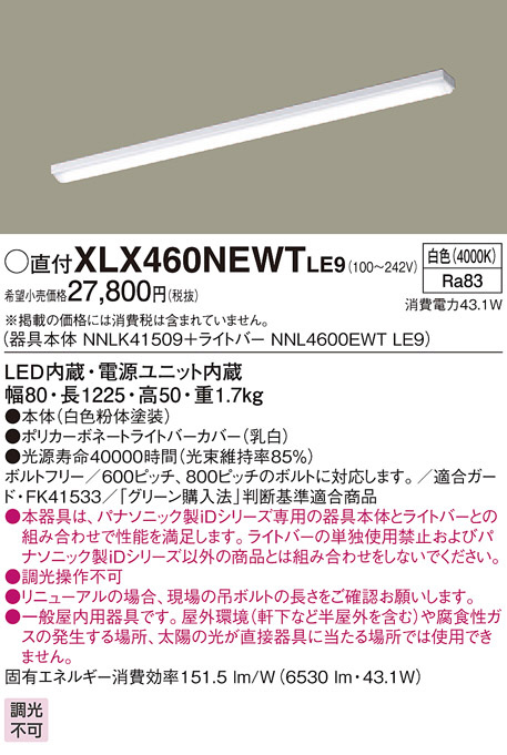 Panasonic ¥Ù¡¼¥¹¥é¥¤¥È XLX460NEWTLE9