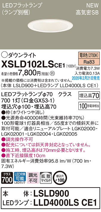 Panasonic ¥À¥¦¥ó¥é¥¤¥È XSLD102LSCE1