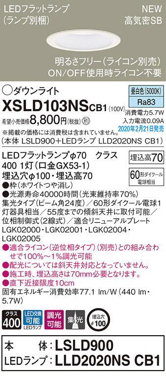 Panasonic ¥À¥¦¥ó¥é¥¤¥È XSLD103NSCB1