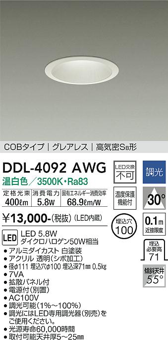 DAIKO Âç¸÷Åŵ¡ ¥À¥¦¥ó¥é¥¤¥È DDL-4092AWG