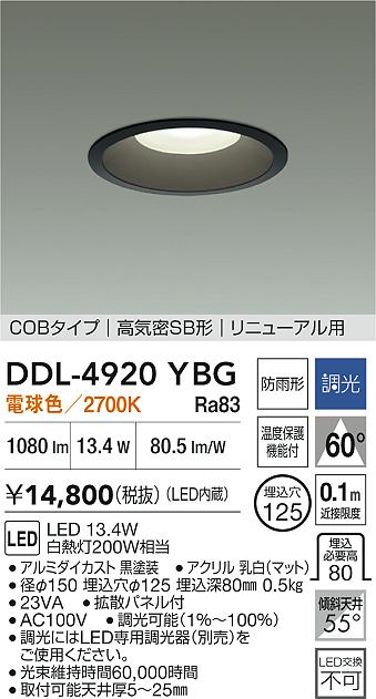 DAIKO Âç¸÷Åŵ¡ ¥À¥¦¥ó¥é¥¤¥È(¸®²¼·óÍÑ) DDL-4920YBG