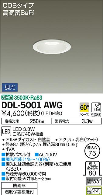 DAIKO Âç¸÷Åŵ¡ ¥À¥¦¥ó¥é¥¤¥È(¸®²¼·óÍÑ) DDL-5001AWG