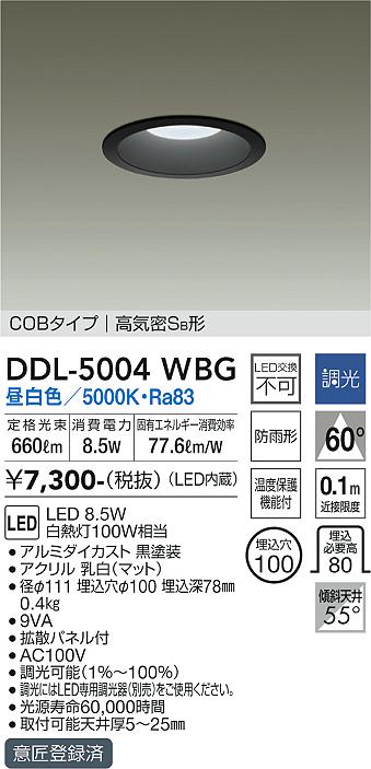 DAIKO Âç¸÷Åŵ¡ ¥À¥¦¥ó¥é¥¤¥È(¸®²¼·óÍÑ) DDL-5004WBG