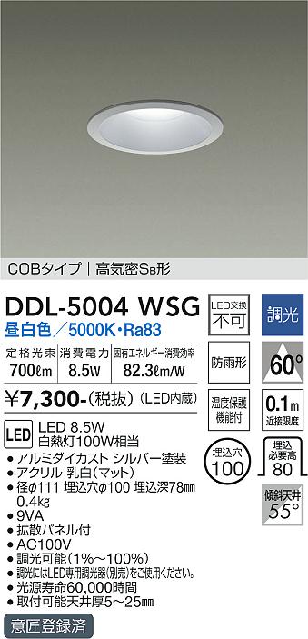 DAIKO Âç¸÷Åŵ¡ ¥À¥¦¥ó¥é¥¤¥È(¸®²¼·óÍÑ) DDL-5004WSG