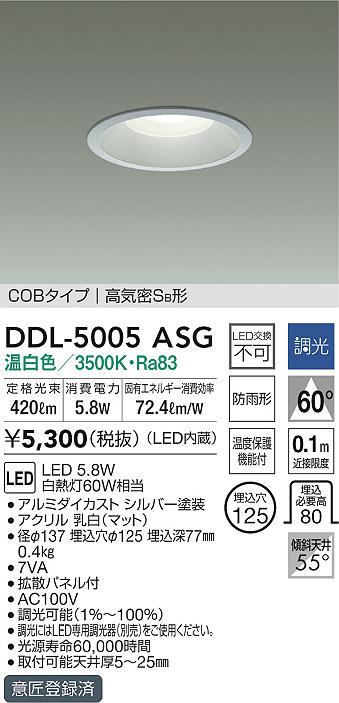 DAIKO Âç¸÷Åŵ¡ ¥À¥¦¥ó¥é¥¤¥È(¸®²¼·óÍÑ) DDL-5005ASG