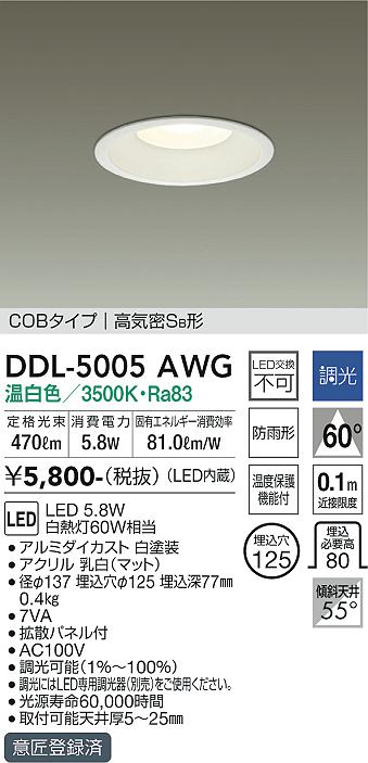 DAIKO Âç¸÷Åŵ¡ ¥À¥¦¥ó¥é¥¤¥È(¸®²¼·óÍÑ) DDL-5005AWG