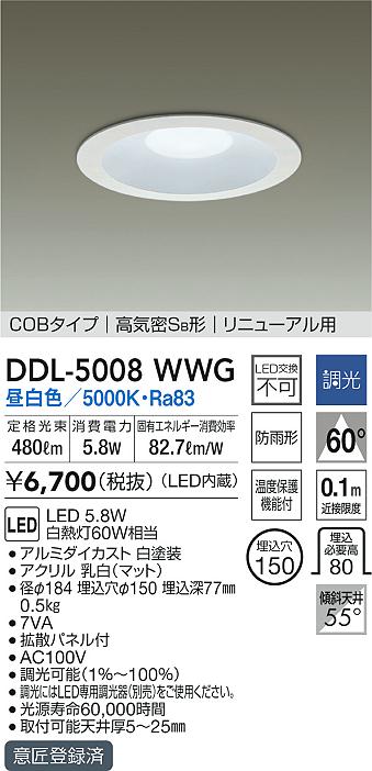 DAIKO Âç¸÷Åŵ¡ ¥À¥¦¥ó¥é¥¤¥È(¸®²¼·óÍÑ) DDL-5008WWG