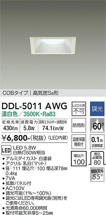 DAIKO Âç¸÷Åŵ¡ ¥À¥¦¥ó¥é¥¤¥È(¸®²¼·óÍÑ) DDL-5011AWG