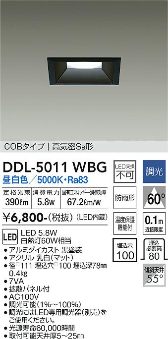 DAIKO Âç¸÷Åŵ¡ ¥À¥¦¥ó¥é¥¤¥È(¸®²¼·óÍÑ) DDL-5011WBG