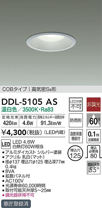 DAIKO Âç¸÷Åŵ¡ ¥À¥¦¥ó¥é¥¤¥È(¸®²¼·óÍÑ) DDL-5105AS
