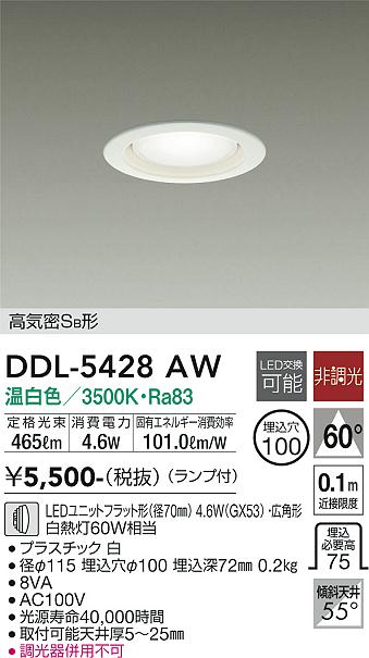DAIKO Âç¸÷Åŵ¡ ¥À¥¦¥ó¥é¥¤¥È DDL-5428AW