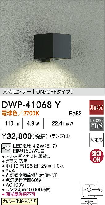 DAIKO Âç¸÷Åŵ¡ ¿Í´¶¥»¥ó¥µ¡¼ÉÕ¥¢¥¦¥È¥É¥¢¥é¥¤¥È DWP-41068Y