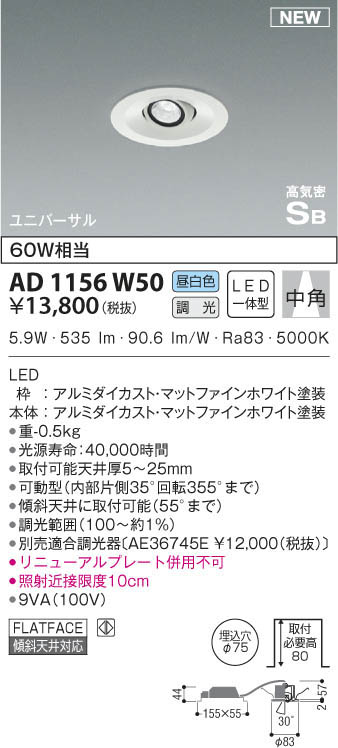KOIZUMI ¥³¥¤¥º¥ß¾ÈÌÀ ¹âµ¤Ì©¥æ¥Ë¥Ð¡¼¥µ¥ë¥À¥¦¥ó¥é¥¤¥È AD1156W50