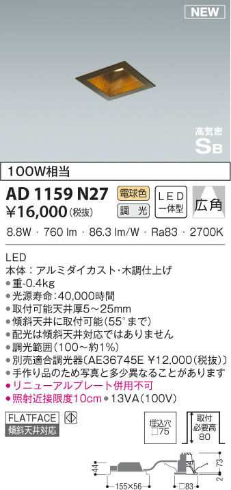 KOIZUMI ¥³¥¤¥º¥ß¾ÈÌÀ ¹âµ¤Ì©¥À¥¦¥ó¥é¥¤¥È AD1159N27