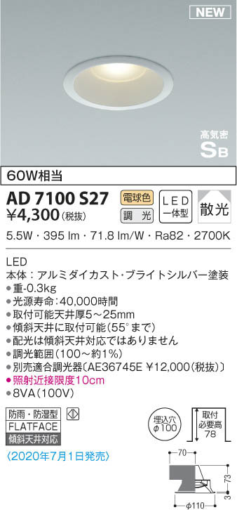KOIZUMI ¥³¥¤¥º¥ß¾ÈÌÀ ¹âµ¤Ì©¥À¥¦¥ó¥é¥¤¥È AD7100S27