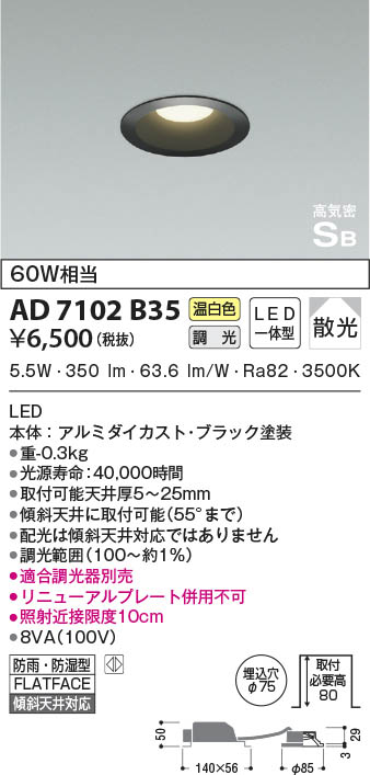KOIZUMI ¥³¥¤¥º¥ß¾ÈÌÀ ¹âµ¤Ì©SB¥À¥¦¥ó¥é¥¤¥È AD7102B35