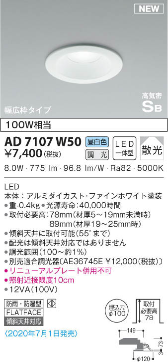 KOIZUMI ¥³¥¤¥º¥ß¾ÈÌÀ ¹âµ¤Ì©¥À¥¦¥ó¥é¥¤¥È AD7107W50