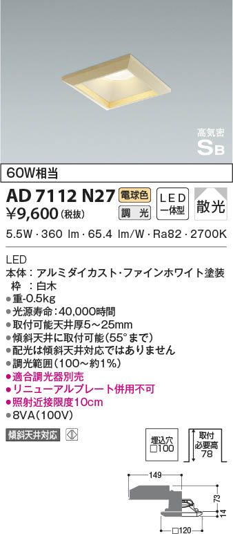 KOIZUMI ¥³¥¤¥º¥ß¾ÈÌÀ ¹âµ¤Ì©SB¥À¥¦¥ó¥é¥¤¥È AD7112N27