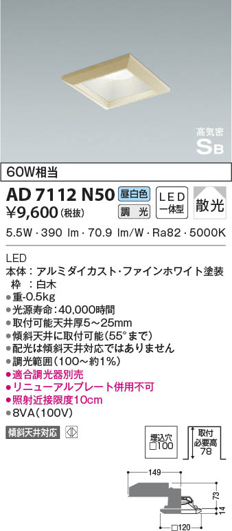 KOIZUMI ¥³¥¤¥º¥ß¾ÈÌÀ ¹âµ¤Ì©SB¥À¥¦¥ó¥é¥¤¥È AD7112N50