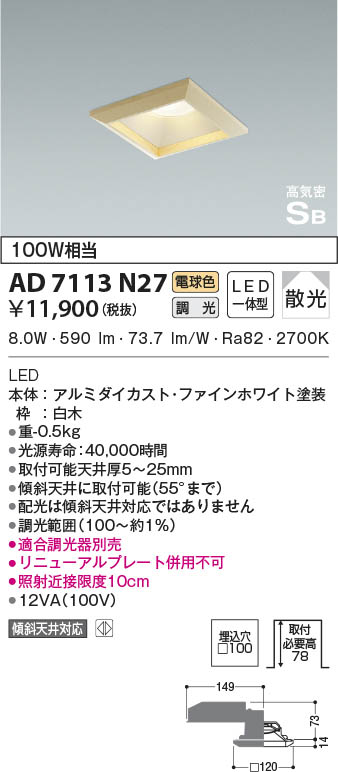 KOIZUMI ¥³¥¤¥º¥ß¾ÈÌÀ ¹âµ¤Ì©SB¥À¥¦¥ó¥é¥¤¥È AD7113N27