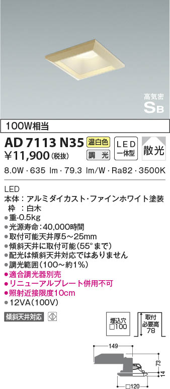 KOIZUMI ¥³¥¤¥º¥ß¾ÈÌÀ ¹âµ¤Ì©SB¥À¥¦¥ó¥é¥¤¥È AD7113N35