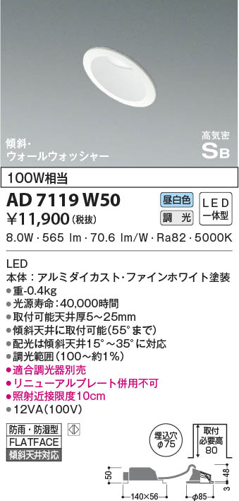 KOIZUMI ¥³¥¤¥º¥ß¾ÈÌÀ ¹âµ¤Ì©SB¥À¥¦¥ó¥é¥¤¥È AD7119W50