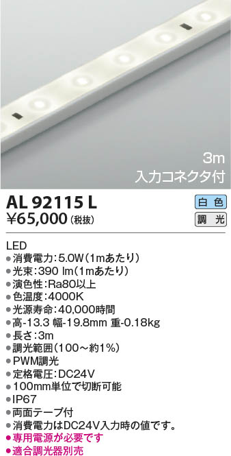 KOIZUMI ¥³¥¤¥º¥ß¾ÈÌÀ ¥Æ¡¼¥×¥é¥¤¥È AL92115L