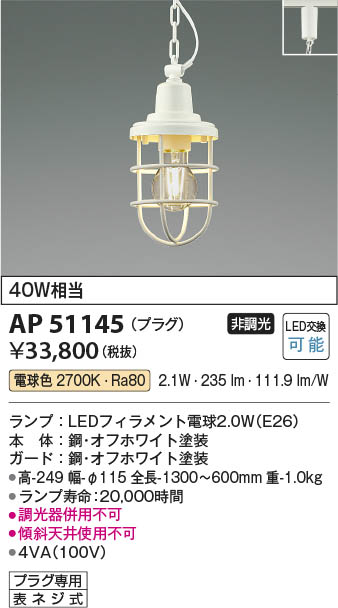 Koizumi ¥³¥¤¥º¥ß¾ÈÌÀ LED¥Ú¥ó¥À¥ó¥È AP51145