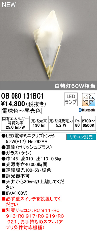 ODELIC ¥ª¡¼¥Ç¥ê¥Ã¥¯ ¥Ö¥é¥±¥Ã¥È OB080131BC1