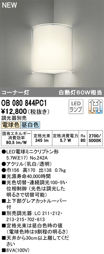 ODELIC ¥ª¡¼¥Ç¥ê¥Ã¥¯ ¥Ö¥é¥±¥Ã¥È OB080844PC1