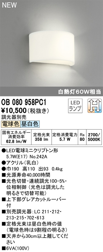 ODELIC ¥ª¡¼¥Ç¥ê¥Ã¥¯ ¥Ö¥é¥±¥Ã¥È OB080958PC1