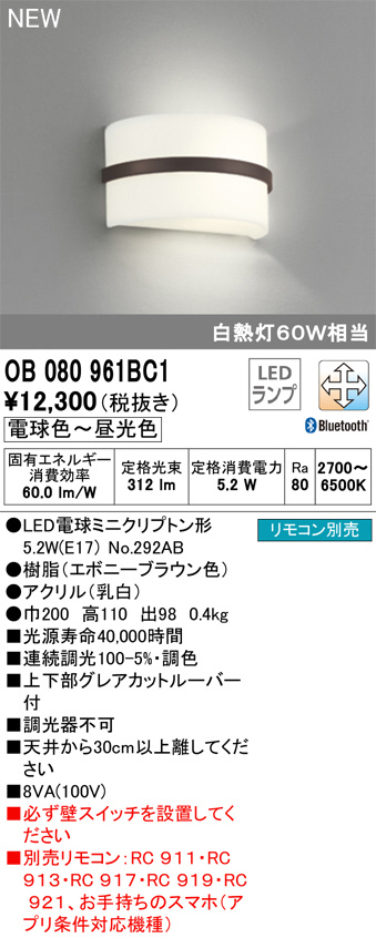 ODELIC ¥ª¡¼¥Ç¥ê¥Ã¥¯ ¥Ö¥é¥±¥Ã¥È OB080961BC1