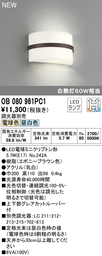 ODELIC ¥ª¡¼¥Ç¥ê¥Ã¥¯ ¥Ö¥é¥±¥Ã¥È OB080961PC1