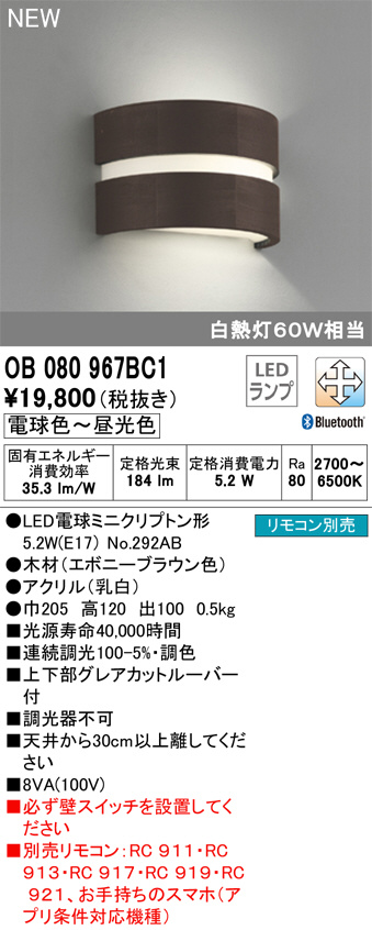 ODELIC ¥ª¡¼¥Ç¥ê¥Ã¥¯ ¥Ö¥é¥±¥Ã¥È OB080967BC1