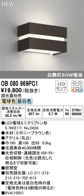 ODELIC ¥ª¡¼¥Ç¥ê¥Ã¥¯ ¥Ö¥é¥±¥Ã¥È OB080969PC1