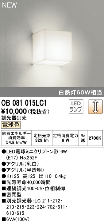 ODELIC ¥ª¡¼¥Ç¥ê¥Ã¥¯ ¥Ö¥é¥±¥Ã¥È OB081015LC1