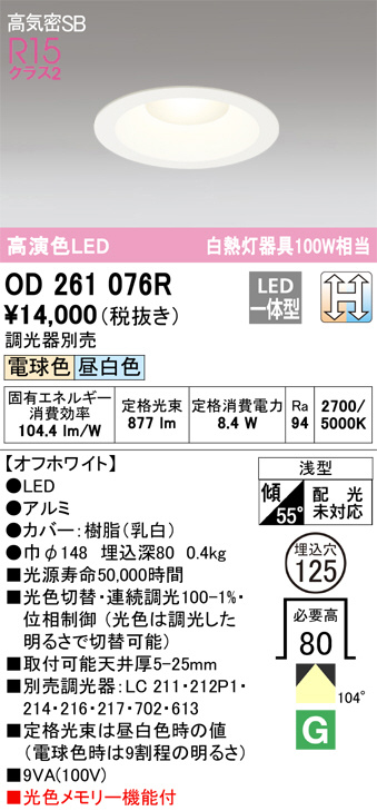 ODELIC ¥ª¡¼¥Ç¥ê¥Ã¥¯ ¥À¥¦¥ó¥é¥¤¥È OD261076R